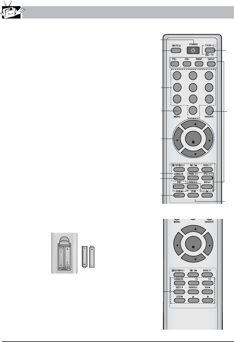COLOURED BUTTONS : These buttons are used for teletext (only