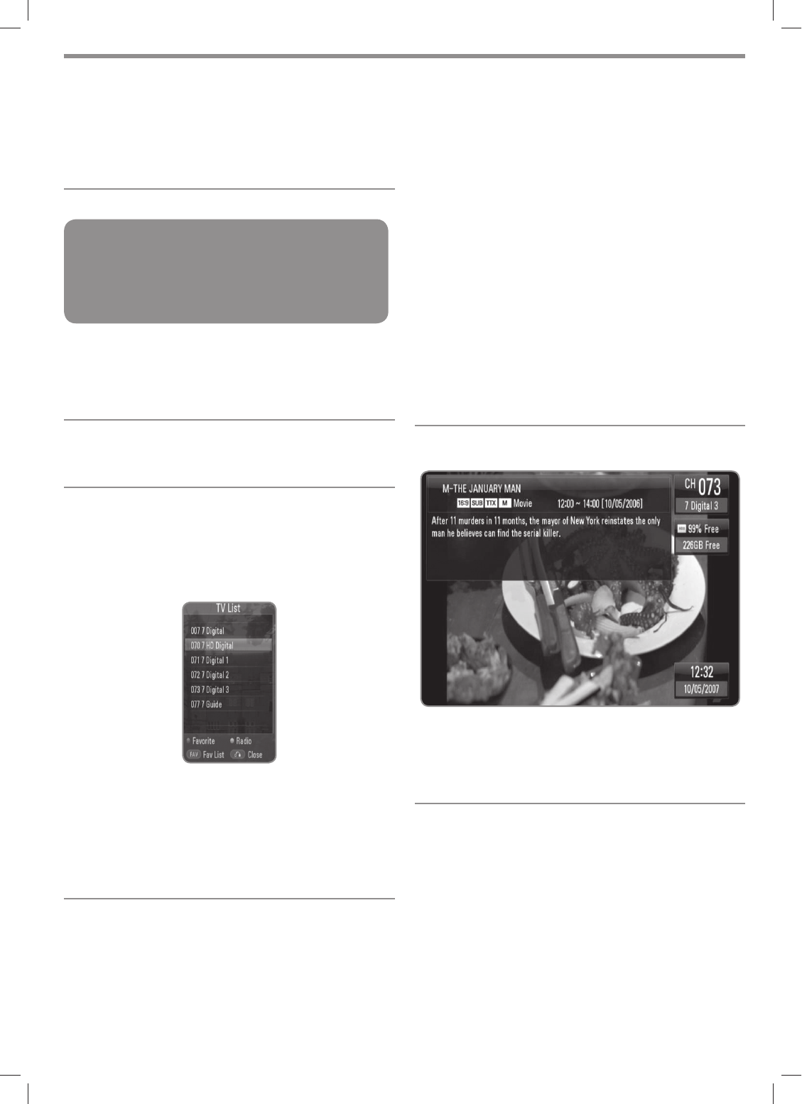 You can watch and record the digital TV programmes or playback the recorded TV programmes you want to watch using