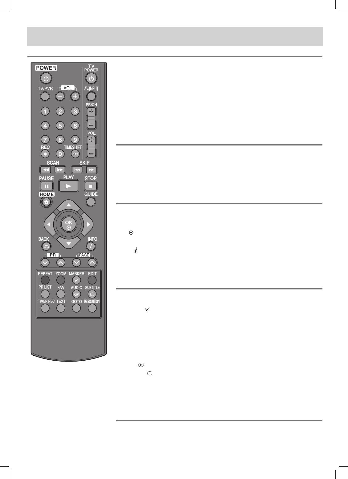 TV/PVR: To view channels selected by the recorder tuner or by the TV tuner.
